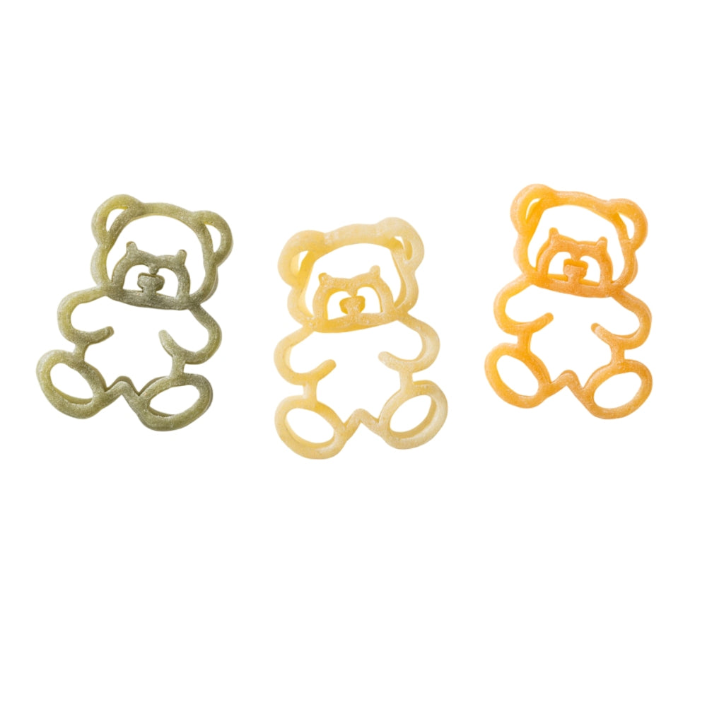 Pasta Teddy tricolore con pomodoro e spinaci confezione risparmio 8x200 grammi Pasta bio per bambini a forma di orsetto Ingredienti: semola biologica di grano duro, pomodoro biologico disidratato 0,8%, spinaci biologici disidratati 0,4%, tiamina (Vit. B1) 200 gr Linea Speciale biologica dedicata ai bambini Tempo di cottura 8-10 minuti Conservare in un luogo fresco e asciutto Made in italy Dalla Costa: il Cuore della Pasta italiana dal 1898